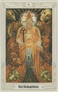 Das Thoth Tarot ist von so komplexer Symbolik, dass es unzählige Seiten bräuchte, um sie zu erklären. Am Beispiel des Hohepriesters lässt sich jedoch gut die mystische Tiefe der Tarotkarten erkennen. Der Hohepriester symbolisiert im Tarot normalerweise Moralvorstellungen und Sinnfindung. Im Thoth Tarot jedoch repräsentiert er insbesondere den Beginn des neuen Zeitalters und soll vor leeren Glaubenssystemen warnen.