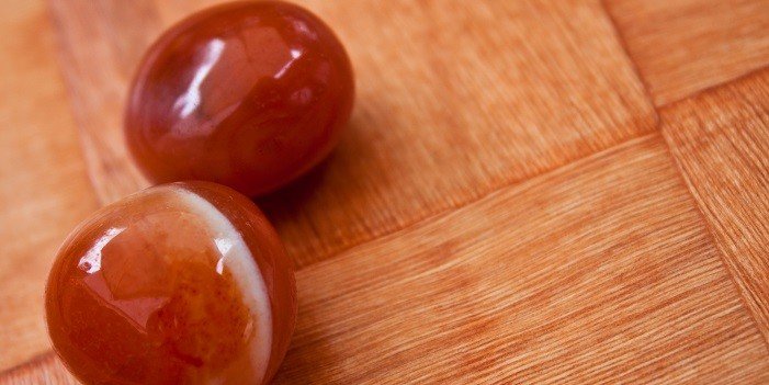 Der Karneol fasziniert mit seinen unverwechselbaren Rottönen und präsentiert sich als beeindruckender Blickfang. Vermutlich geht der Name „Karneol“ oder „Carneol“ auf das Wort „Kornelkirsche“ zurück, die dem Heilstein farblich gleicht. Eine weitere Interpretation sieht den Ursprungsnamen im Wort „carne“, lat. für „Fleisch“. Manche bezeichnen den Stein deshalb auch als Fleischachat. Karneole gehören den Chalcedonen aus der Familie der Quarze an. Die Steine weisen eine Härte von 7 auf, weshalb sich die Exemplare hervorragend zur Herstellung vom Schmuck oder Figuren eignen.