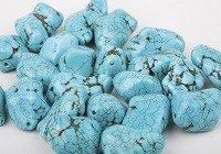 Die Farben dieses wunderschönen Halbedelsteines reichen von tiefblau über grünlich-blau bis hin zu einem klaren hellblau, das an einen kristallklaren Bergsee erinnert. Die Musterung variiert dabei von einer klaren, ungetrübten Farbe über jene Steine, die von dunklen Einsprengseln durchzogen sind bis hin zum sehr seltenen und daher umso populäreren Spinnennetz-Türkis.