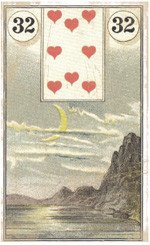 „Der Mond“ als Spiegel von Emotionen und Sehnsüchten verleiht den umliegenden Karten einen tiefgründigen und ernsthaften Charakter. Daher wird zusammen mit „Der Berg“ (Nr. 21) oder „Der Turm“ (Nr. 19) eine innere Blockade oder Hemmung angezeigt. Mit Karten wie „Die Wolken“ (Nr. 6) oder „Der Sarg“ (Nr. 8) könnte Schwermut, wenn nicht sogar Depressionen gemeint sein. „Der Mond“ in Verbindung mit „Der Stern“ (Nr. 16) steht für innere Klarheit oder Hellsichtigkeit; mit „Die Sonne“ (Nr. 31) wird Lebensfreude und Energie repräsentiert. Kombiniert mit „Das Haus“ (Nr. 4) zeigt „Der Mond“ auf, dass Körper und Seele im Einklang sind. Wenn „Der Mond“ mit „Das Herz“ (Nr. 24) oder „Der Ring“ (Nr. 25) erscheint, wird damit eine tiefe und wohltuende zwischenmenschliche Verbindung beschrieben.